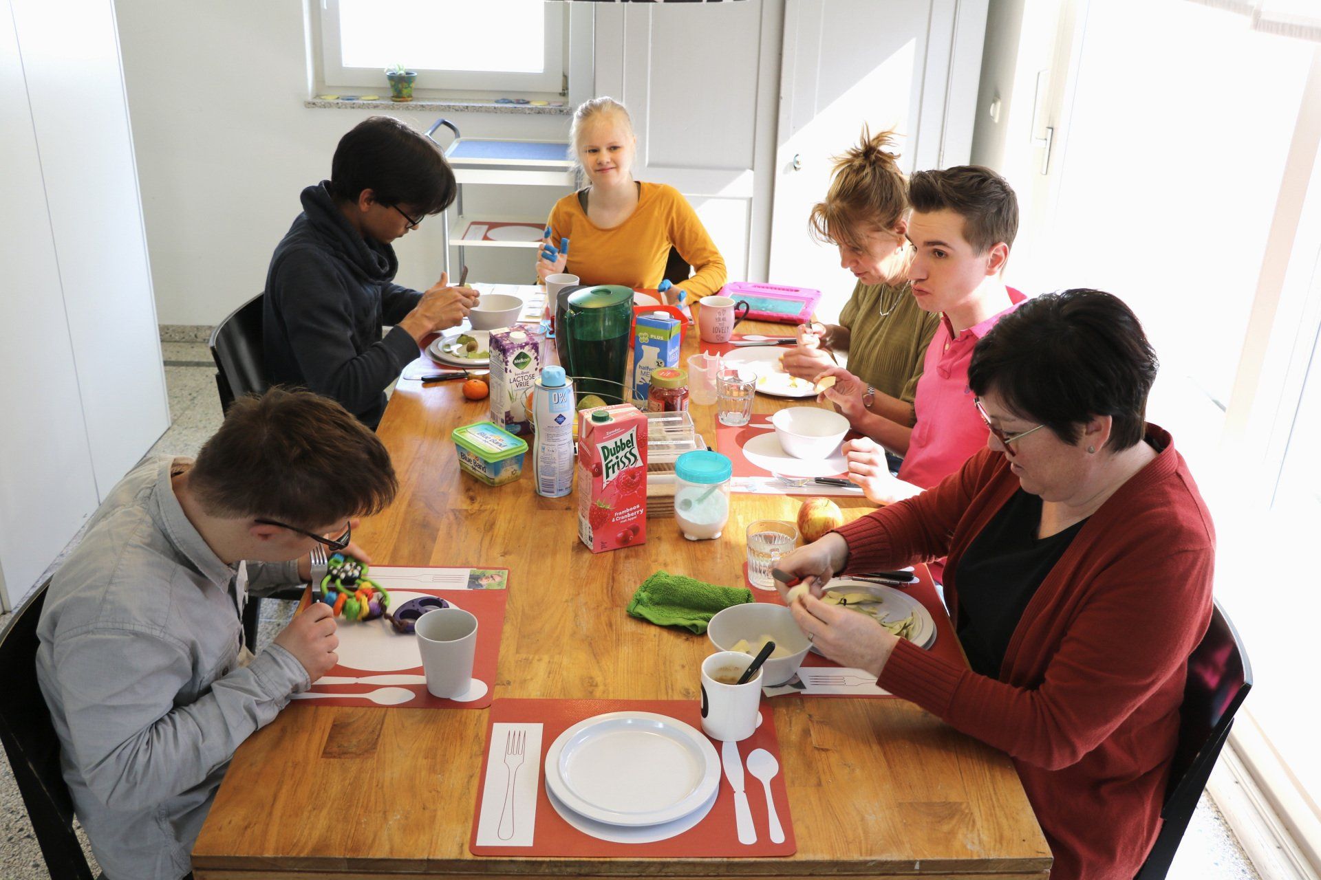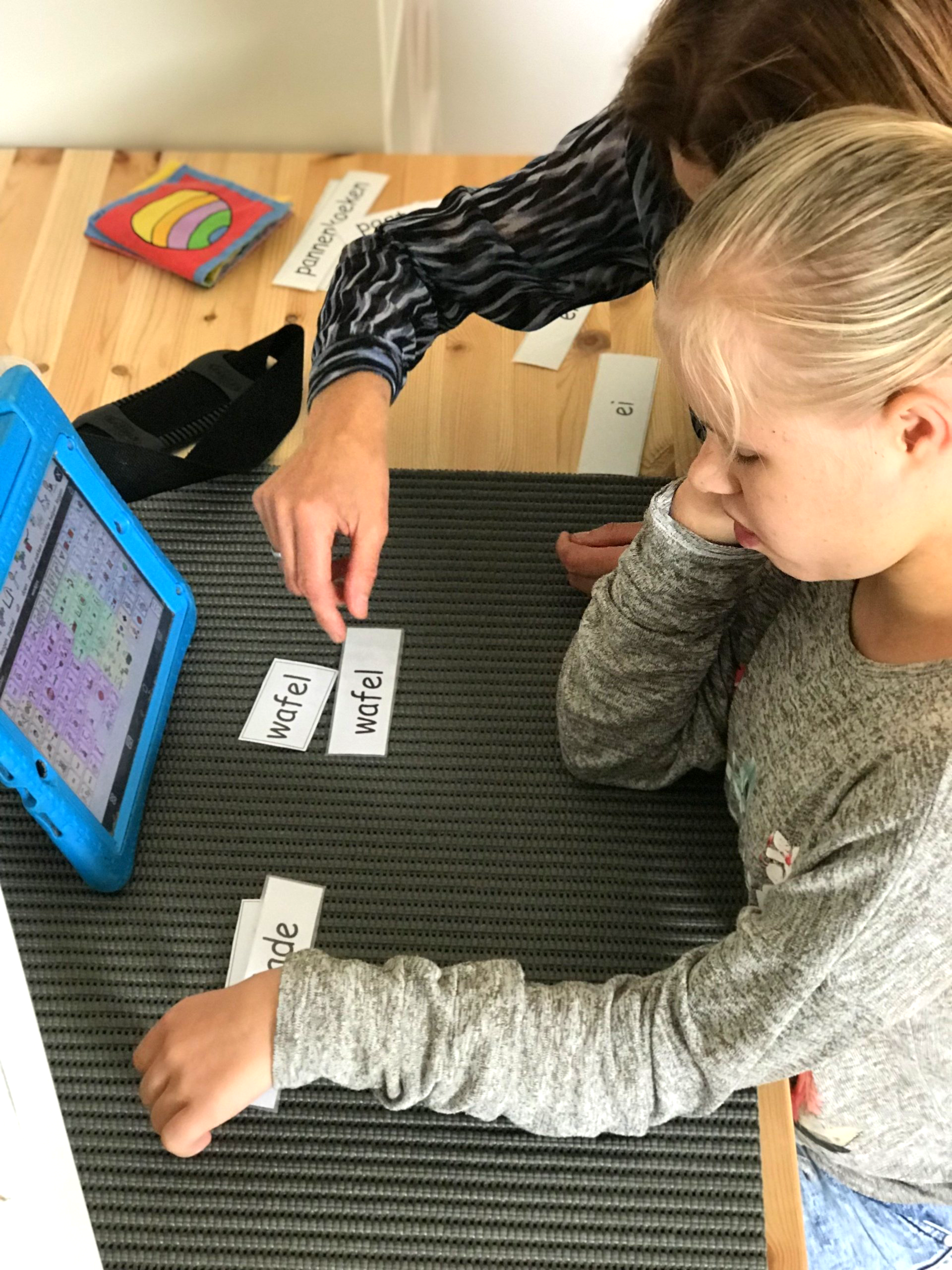 Dan is het toch echt tijd om te beginnen. Mathieu ruimt zijn speeltjes op en moet zich concentreren tijdens zijn eerste activiteiten; puzzels op de tablet, woordjes leren en werkjes maken. Jake mag nog even ontspannen tijdens de sensorische integratie activiteit en Emma begint de dag actief met een flinke wandeling. Terwijl Mathieu de tafel dekt, geeft Jake alle planten water, en Emma? Emma houdt de jongens in de gaten vanaf haar eigen speelbankje in de woonkamer. Tijdens het gezamenlijke fruitmoment is er een hoop gezellig geklets en lacht Mathieu regelmatig mee om de grapjes van begeleiders en ook Jake geniet van de gezelligheid van dit moment.