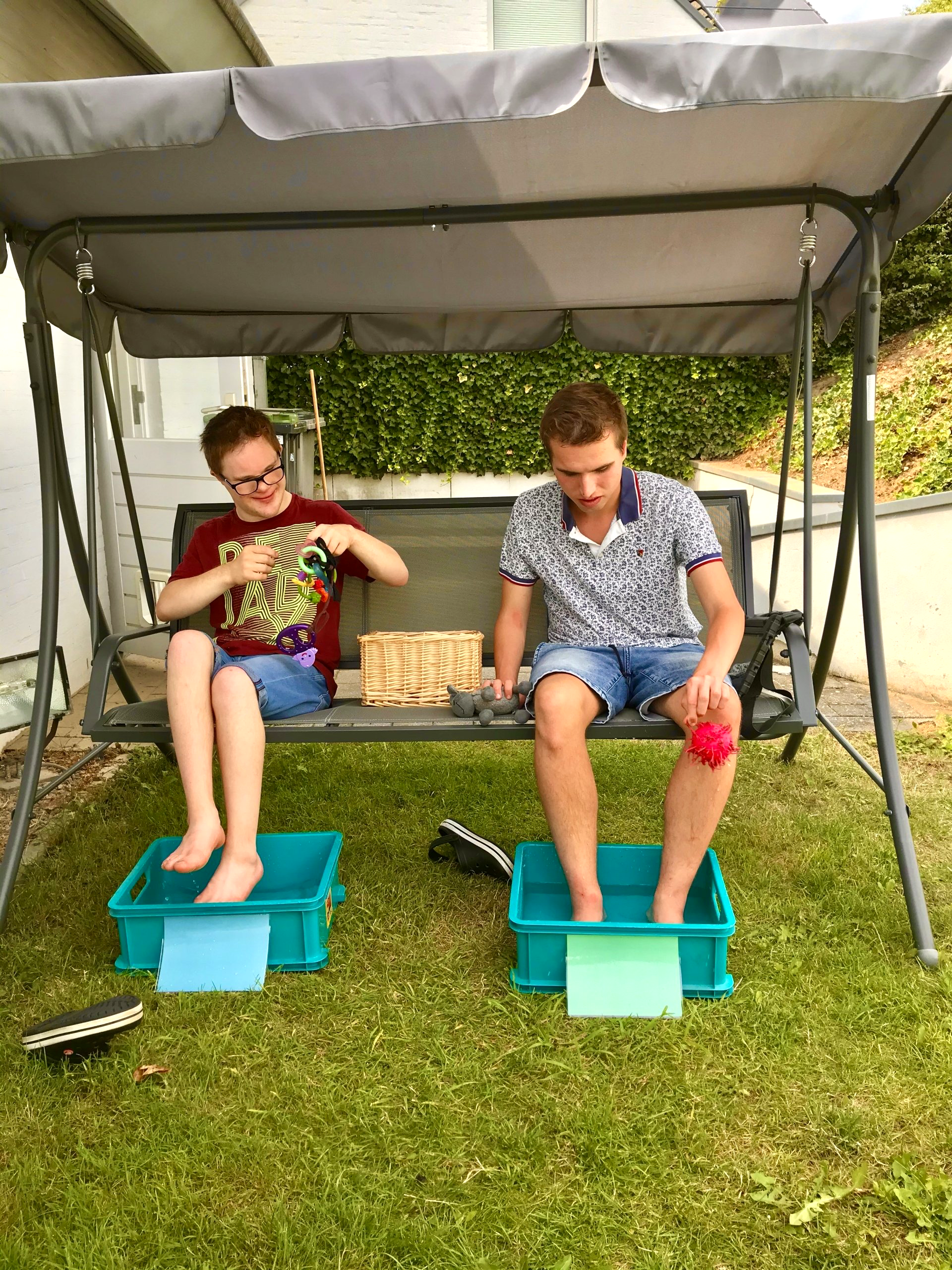 Goeiemorgen! Want daar beginnen we natuurlijk mee. Al slaperig naar de badkamer en het liefst een beetje zachtjes, want waar Jake al vroeg klaar is om zijn dag te beginnen hebben Mathieu en Emma hier iets meer tijd voor nodig. De dag wordt relaxed gestart met een lekker warm bad en uitgebreide verzorging. Door al dat gestommel op de badkamer wordt ook Mathieu rustig wakker en mag hij nog even lekker dommelen. Dan mag ook Mathieu lekker in bad en gaan de jongens fris en fruitig naar beneden om de dag verder rustig te starten. Mathieu op de bank met zijn speeltjes en Jake aan zijn eigen tafel met sensorisch Materiaal. Dan is het voor Emma ook tijd om op te staan en moet ze ondanks het gestommel op de badkamer toch nog worden wakker gemaakt. Gelukkig is er in bad genoeg tijd om wakker te worden en start Emma vervolgens haar dag door even lekker te spelen.