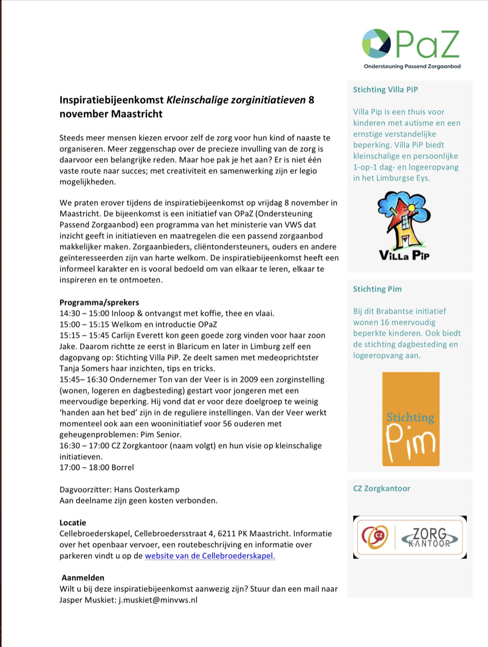 Villa PiP heeft voor Opaz presentaties gegeven op inspiratie bijeenkomsten in het land